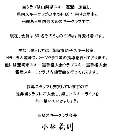 韮崎スキークラブ 韮崎市スキー連盟/山梨県スキー連盟加盟